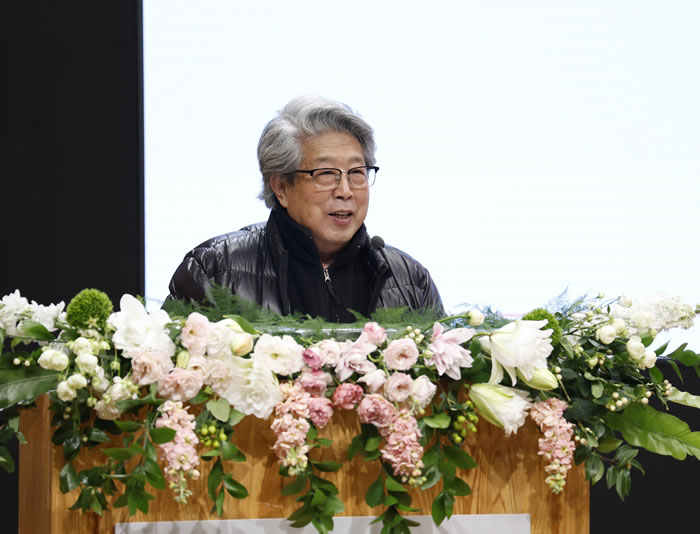 “小盆栽大樹,蔥郁待果紅。丹青緣夢啟,師恩澤后英。藝圃青春業,永葆常青春”,楊光河在致辭中為附中建校70周年獻上賀詞,他表示,“小盆栽大樹”是丁井文校長所提,意指附中本來就是一個小盆,它的規模并不大,但卻為中國的美術事業培養了眾多的精英人才;“蔥郁待果紅”這是趙允安校長所提,指附中培養的是又大又青的蘋果,雖沒有完全成熟,卻為將來的藝術成長提供了良好的基礎;“丹青緣夢啟,師恩澤后英”意指附中是我們藝術夢開始的地方,為我們從事美術事業、美術教育奠定了基礎;“藝圃青春業,永葆常青春”意指附中的美術基礎教育不僅是授業對象是青春的,在當時的時代背景下,美術基礎教育也是一個剛起步的青春事業,青春的事業是永葆青春的,作為附中的首屆畢業生,感謝母校、祝福母校。