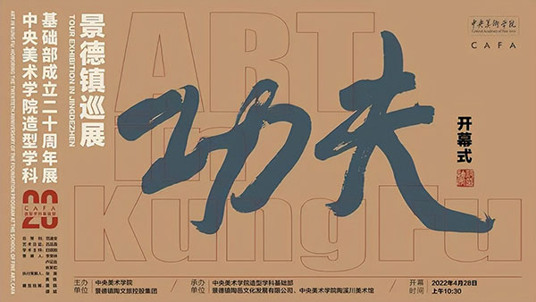 2022年4月28日,由中央美術(shù)學(xué)院、景德鎮(zhèn)陶文旅控股集團(tuán)共同主辦的“功夫——中央美術(shù)學(xué)院造型學(xué)科基礎(chǔ)部成立二十周年展景德鎮(zhèn)巡展”線上開幕式舉行。本次線上開幕式設(shè)北京中央美術(shù)學(xué)院、景德鎮(zhèn)陶溪川美術(shù)館兩個(gè)分會(huì)場(chǎng),雙方嘉賓通過(guò)云端相聚,共同見(jiàn)證展覽開幕。江西景德鎮(zhèn)“功夫”展覽已于3月19日正式開展,一個(gè)多月以來(lái),“功夫”展已在當(dāng)?shù)匦纬闪己脤W(xué)術(shù)效應(yīng),得到各界的廣泛好評(píng)。