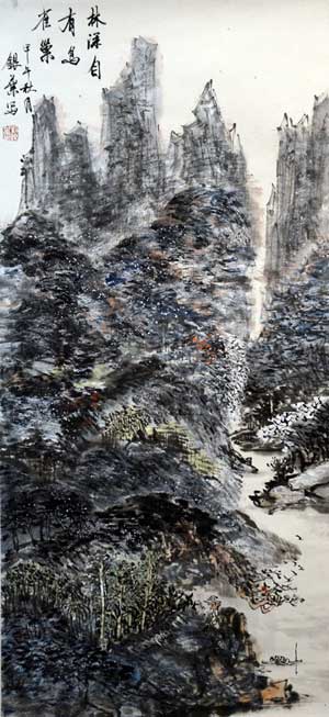 劉銀葉山水畫作品:林深自有鳥雀巢