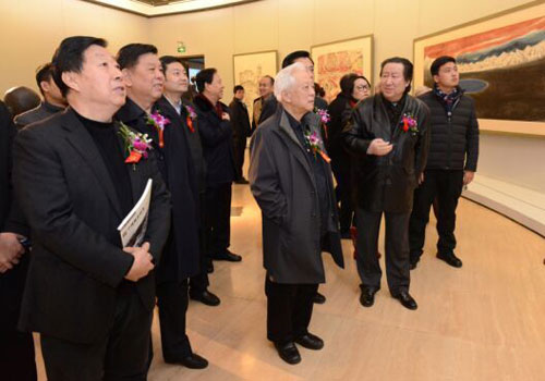 文化部黨組成員、副部長董偉,中國美術家協會主席劉大為,老藝術家代表謝志高、杜大愷,中國國家畫院院長楊曉陽先后致辭。周鐵農、陳宗興、蔡武、陳存根、趙少華、覃志剛、丁偉、呂章申、劉勃舒、袁運甫、詹建俊為開幕式剪彩。中國國家副院長趙衛向大家介紹了出席開幕式的全國人大、全國政協、文化部、中國文聯、中國美協等相關部門領導和嘉賓。開幕式由中國國家畫院常務副院長盧禹舜主持。