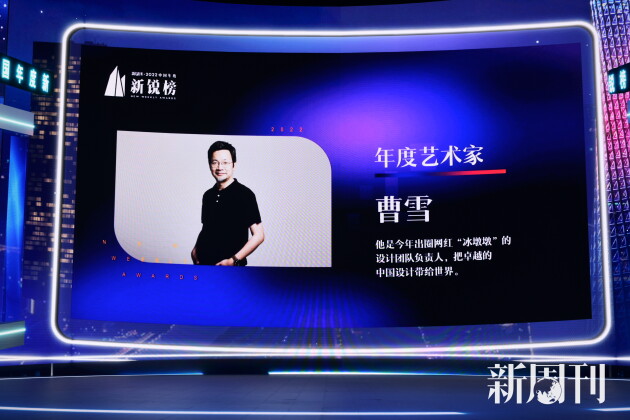 “年度藝術(shù)家”的榮譽(yù)頒發(fā)給了曹雪。這位廣州美術(shù)學(xué)院的教師,帶領(lǐng)著他的團(tuán)隊(duì),設(shè)計(jì)出了2022北京冬奧會(huì)吉祥物冰墩墩。這只隨時(shí)準(zhǔn)備摔倒的憨態(tài)熊貓?jiān)谀瓿跽鞣藖碜允澜绺鞯氐膴W運(yùn)健兒,成了百年奧運(yùn)吉祥物總銷量冠軍,以視覺語言溫暖了世界。“想要冰墩墩得拿個(gè)世界冠軍”的段子廣為流傳。