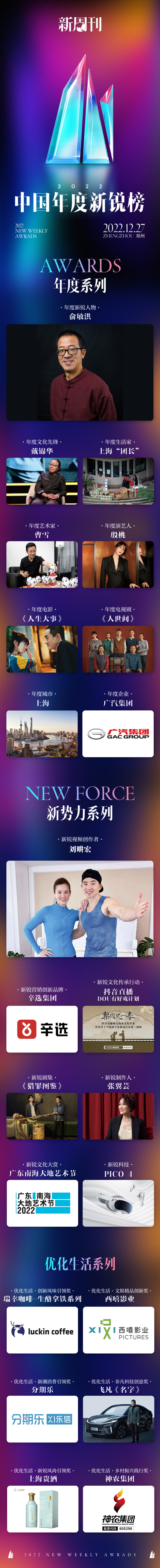 2022中國(guó)年度新銳榜除了年度系列,在“新勢(shì)力系列”和“優(yōu)化生活系列”兩個(gè)更具多元價(jià)值的榜單也看點(diǎn)連連。榮譽(yù)獲得者遍布我們生活日常的方方面面,指引未來新生活的方向。