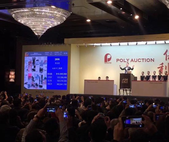 17日晚,北京保利十二周年秋季拍賣會在北京繼續舉行,在夜間進行的“震古爍今——從北宋到當代的中國書畫”專場拍賣中,備受矚目的齊白石《山水十二條屏》經過七十輪的競爭,以9.315億元人民幣成交,成為最貴的中國藝術品,這幅作品此前也被認為是史上估價最高的齊白石作品,中國藝術品拍賣的世界紀錄由此刷新。