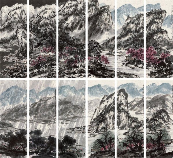 齊白石 山水十二條屏